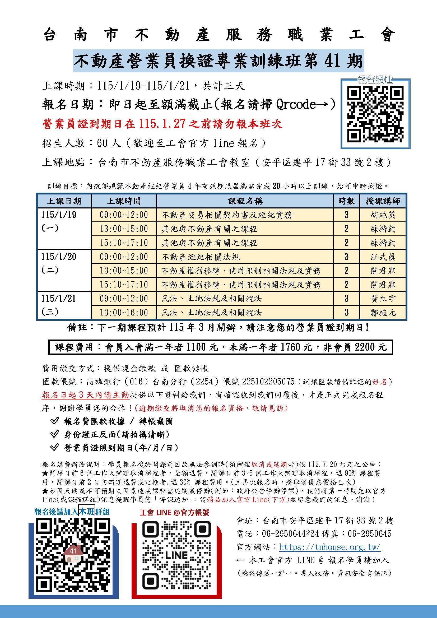 不動產營業員換證課程第41期《開始報名囉》!! 詳細課程內容請參閱本期招生簡章。