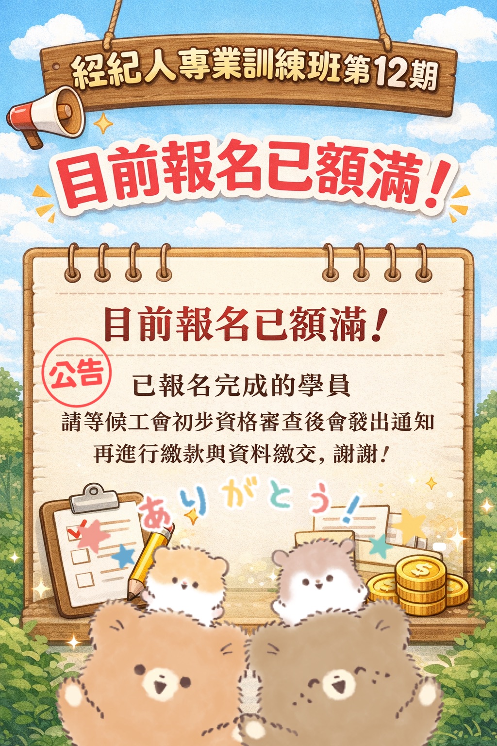 ※ 經紀人專業訓練班第12期 ※已額滿!!