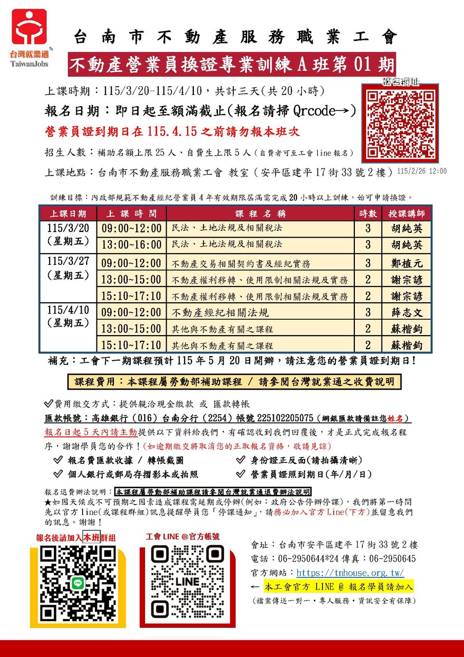 115上半年的不動產"營業員20小時換證"「補助班」將於「明天」正式開放報名哦✔