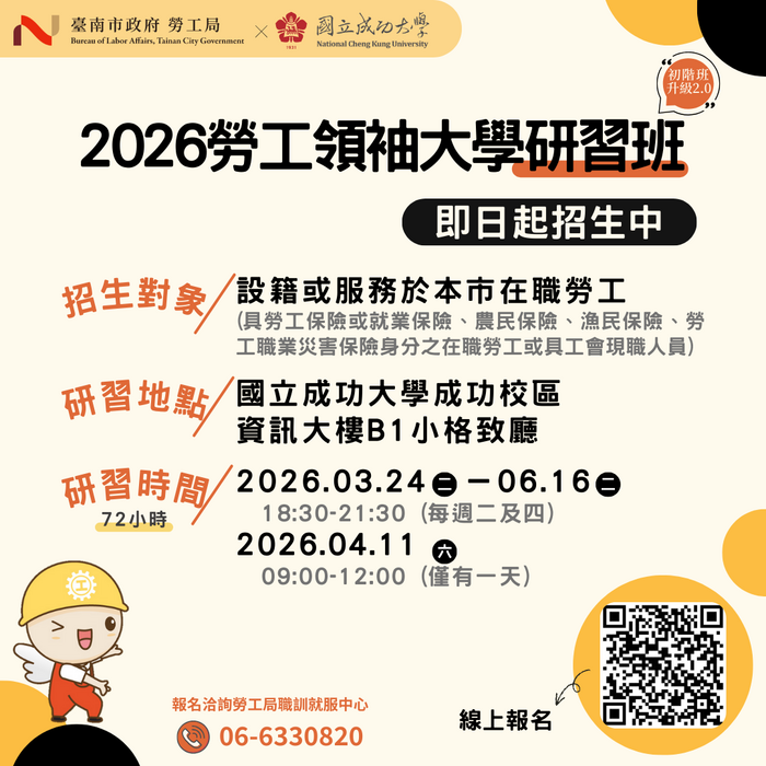 轉發>>2026勞工領袖大學研習班<<即日起開放報名