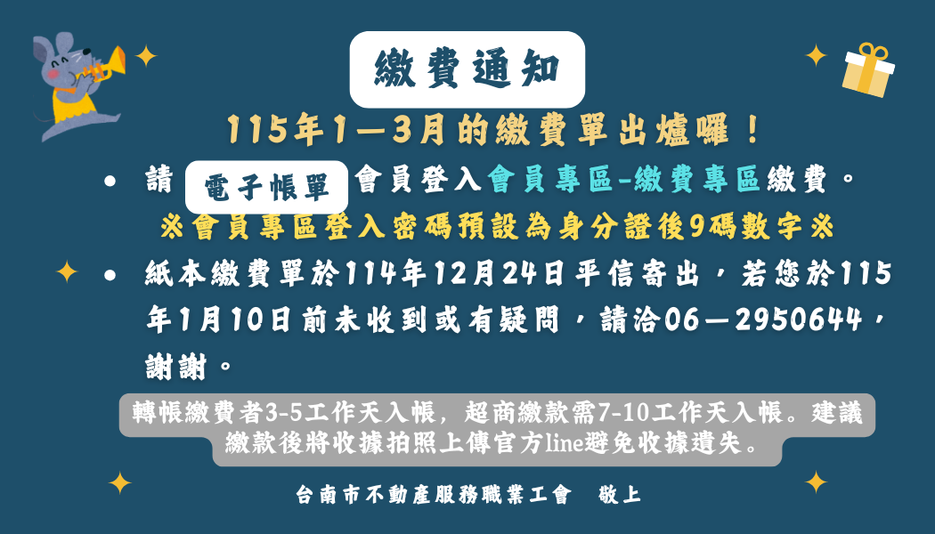 115年1-3月繳款單出爐囉!